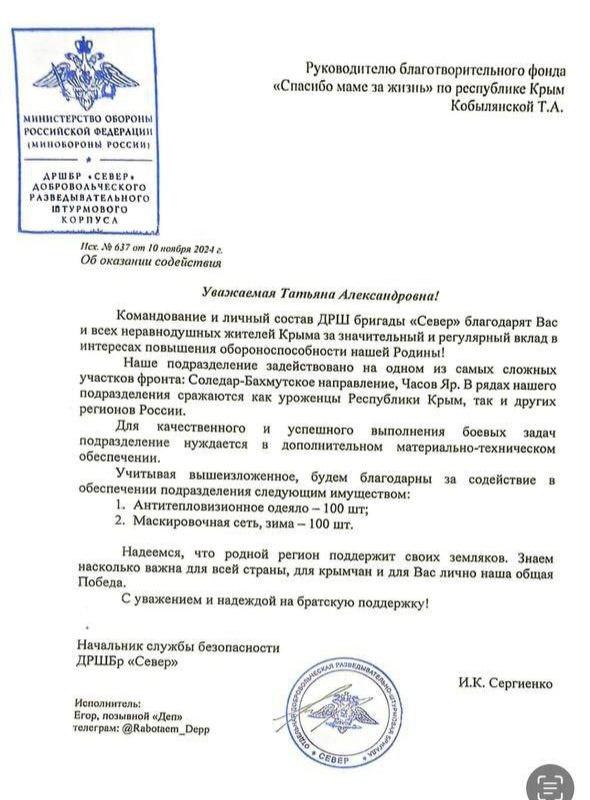 Помогает воинам на СВО